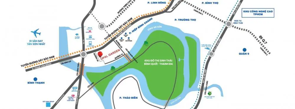 Chính nơi ấy, đã dựng xây một tòa tháp căn hộ chung cư nổi bật ngay giữa trung tâm Quận Thủ Đức, với tầm view ra sông Sài Gòn dịu hiền. Đó chính là căn hộ Opal Garden.