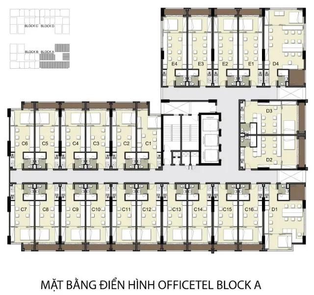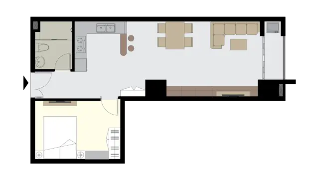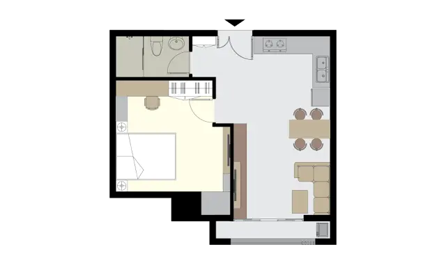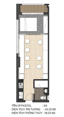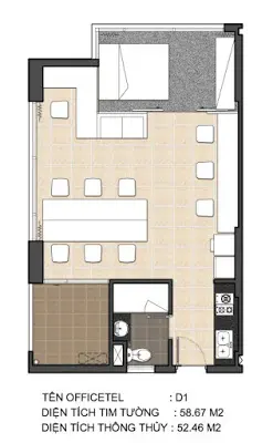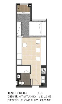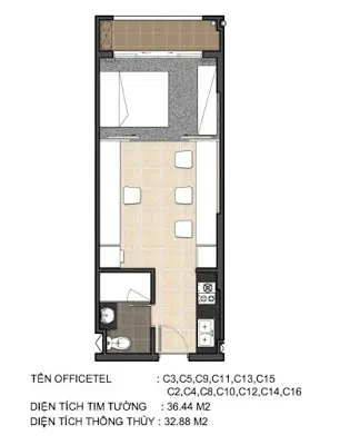 Mặt bằng thiết kế căn hộ 1 phòng ngủ