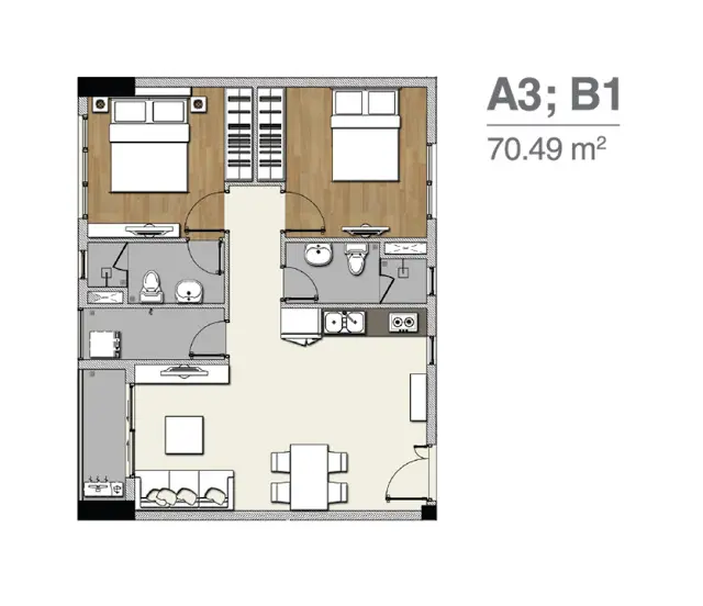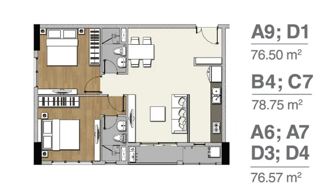 Mặt bằng thiết kế căn hộ 2 phòng ngủ