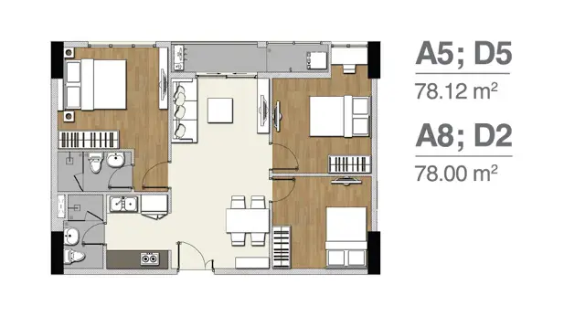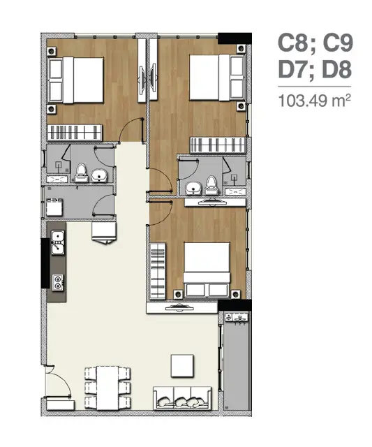 Mặt bằng thiết kế căn hộ 3 phòng ngủ