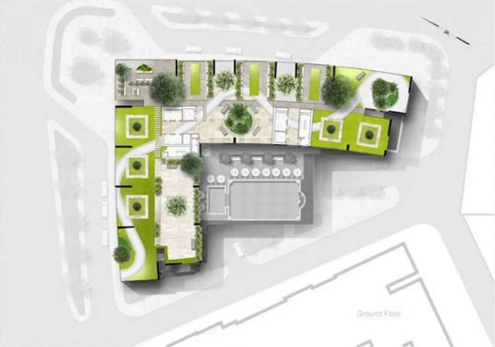 - Khu vườn tiện ích không chỉ tọa lạc ở công viên tầng trệt mà còn nằm trên sân thượng của chung cư