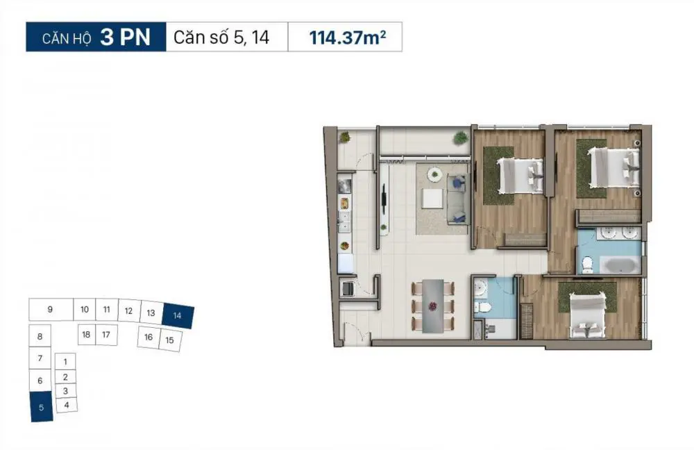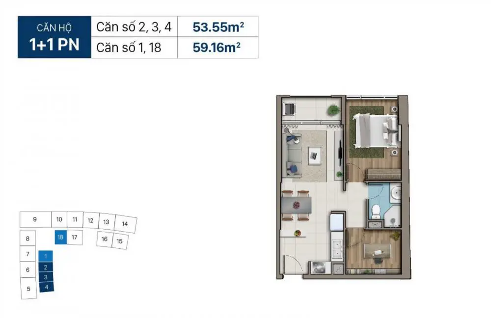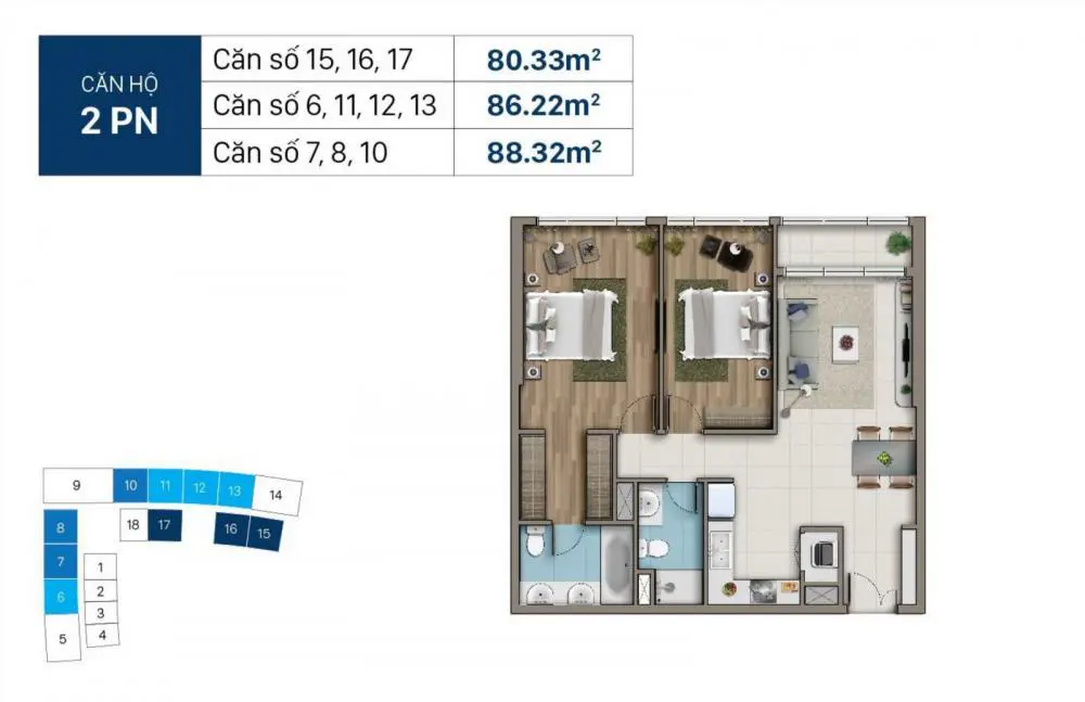 - Diện tích căn hộ: 53m2 - 59m2 - 80m2 - 86m2 - 88m2 - 114m2 - 176m2...