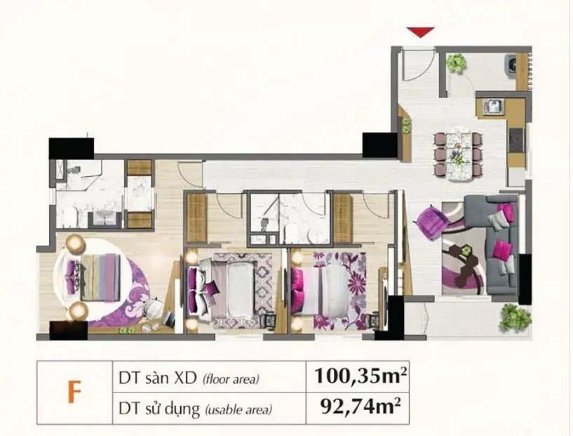 - Căn hộ 3 PN (95-104m2): từ 3,4-4,2 tý/căn hộ thô; từ 4,5-5,1 tỷ/căn hộ có nội thất