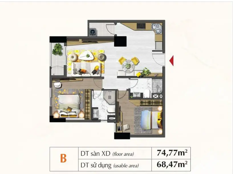 - Căn hộ 2 PN (68-71m2): từ 2,6-2,8 tý/căn hộ thô; từ 3-3,4 tỷ/căn hộ có nội thất