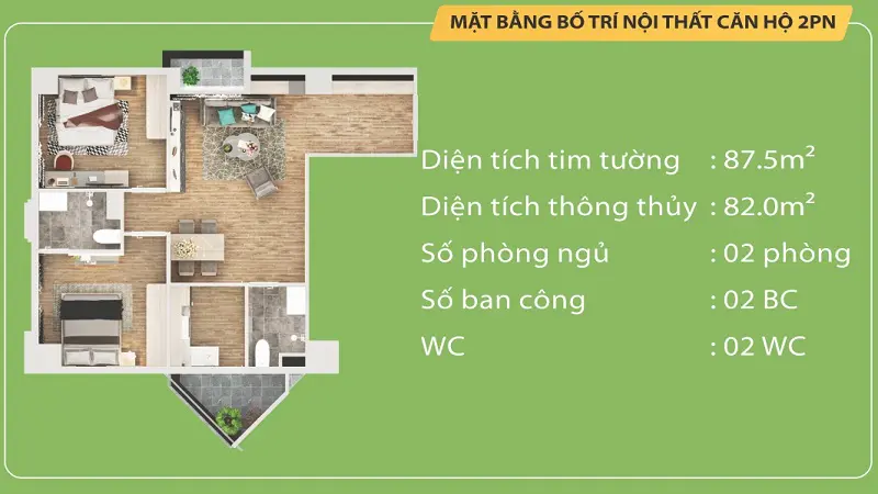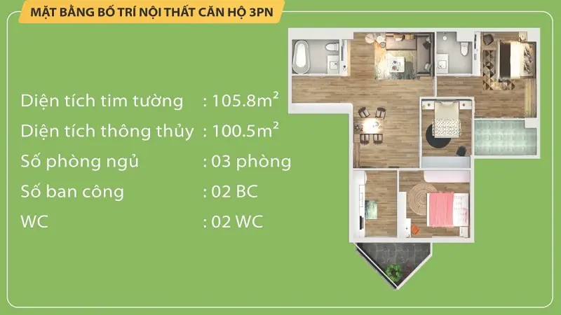 - Bàn giao căn hộ có nội thất hoàn thiện cơ bản, sử dụng vật liệu chất lượng tốt, thân thiện với sức khỏe và môi trường
