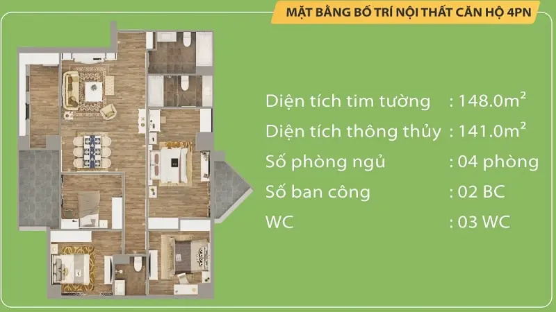 - Diện tích căn hộ rộng, có từ 2-4 phòng ngủ, phù hợp với nhiều đối tượng khách hàng