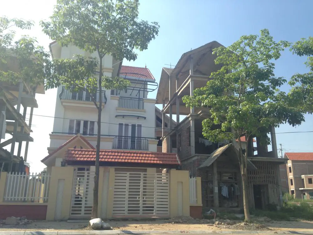 - Khu biệt thự một số căn đã bàn giao, một số căn đang xây thô