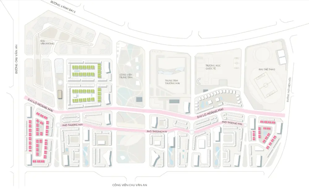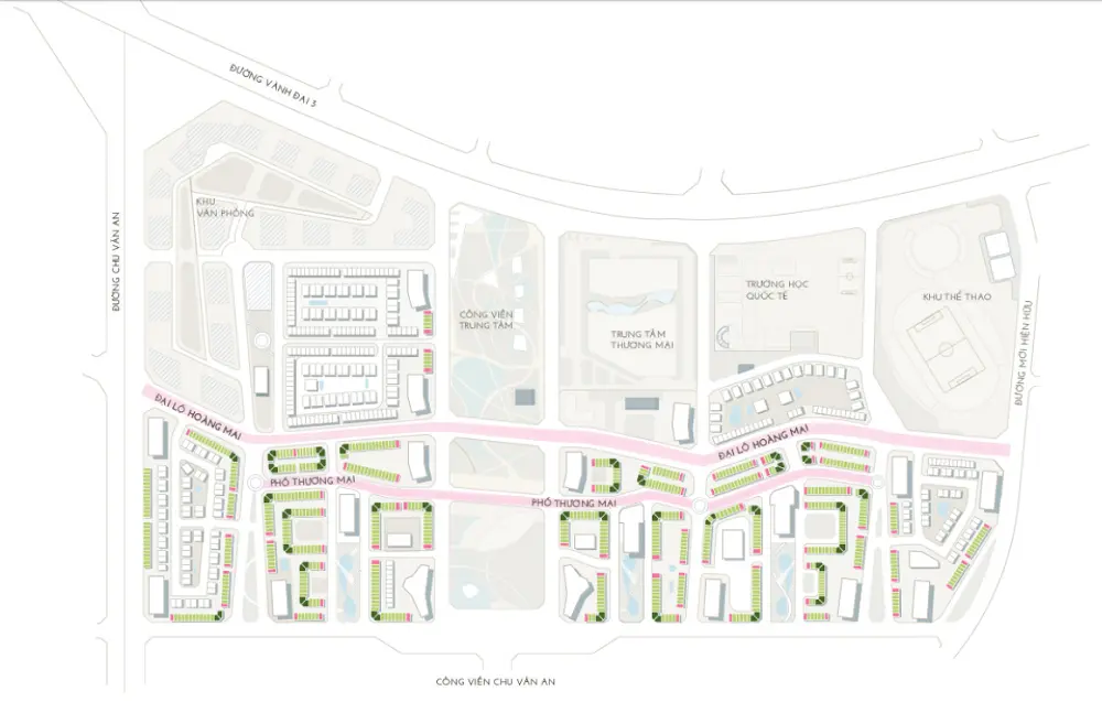 - Phố đi bộ: Mang âm hưởng của “Hà Nội - 36 phố phường”. Tại đây, cư dân có thể đi dạo một cách thảnh thơi, thong dong trong một không gian sầm uất, hiện đại.