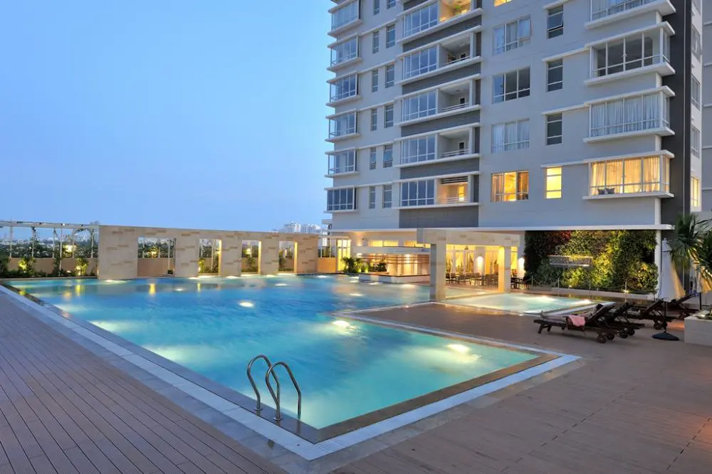 – Tầng 5: Thiết kế, bố trí hồ bơi có diện tích 370m2, phòng tập Gym hiện đại, Sauna, Café, khu vui chơi trẻ em…