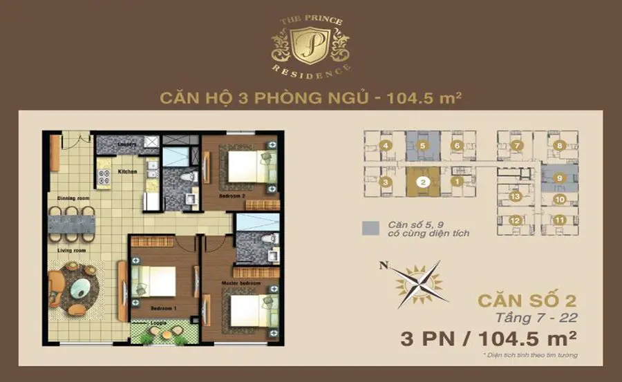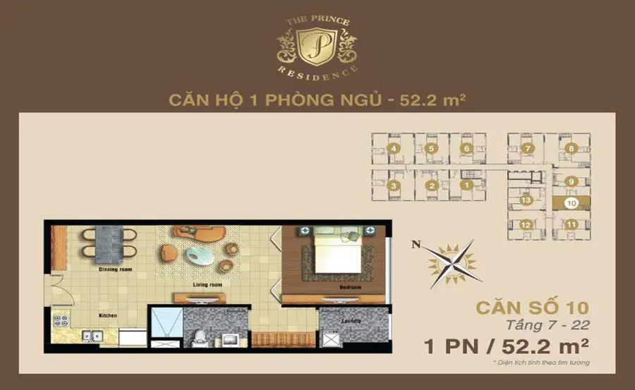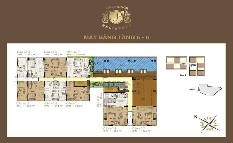 The Prince Residence bao gồm 2 tầng hầm và 2 tòa tháp căn hộ có chiều cao từ 8 – 22 tầng trong đó: