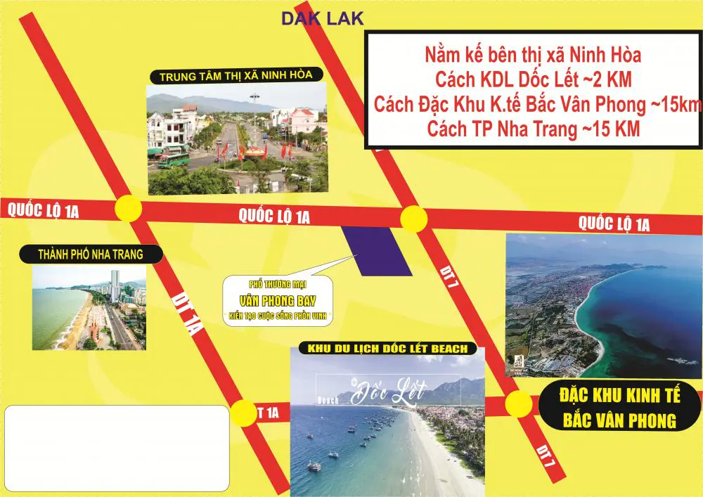 - 23km đến thị trấn Vạn Giã - Bắc Vân Phong (huyện Vạn Ninh)