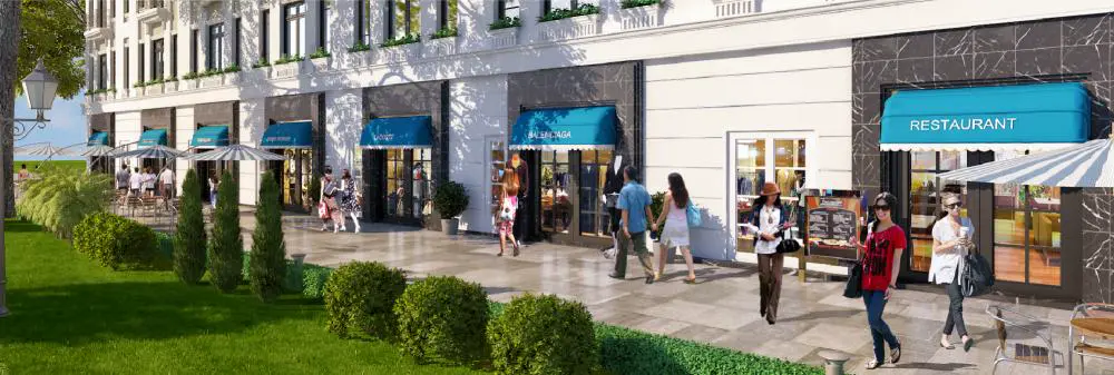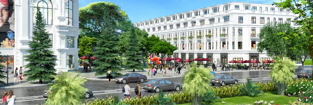 - Nhà phố thương mại: 52 căn, 4 tầng/căn, diện tích mỗi căn là 112-185m2, mặt tiền từ 7-12m