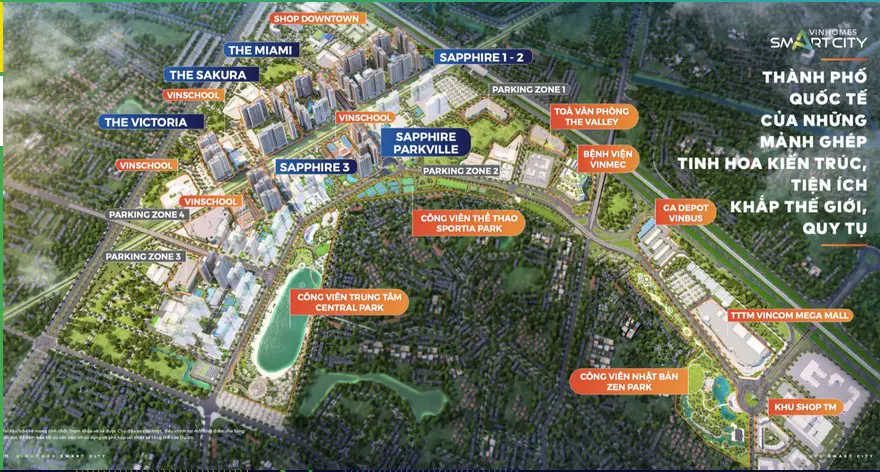 Khu đô thị Vinhomes Smart City được phát triển với tất cả 58 tòa căn hộ, chia thành các phân khu The Sapphire, The Metrolines, Imperia Smart City và Masteri West Heights.