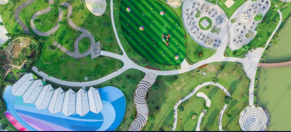 - Công viên trung tâm rộng 10,2ha và 15 công viên chủ đề đặc sắc