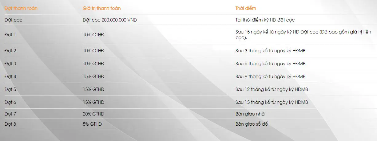 Phương thức thanh toán đối với KH ký HĐMB theo tiến độ 18 tháng tại Will State Nam Cường: