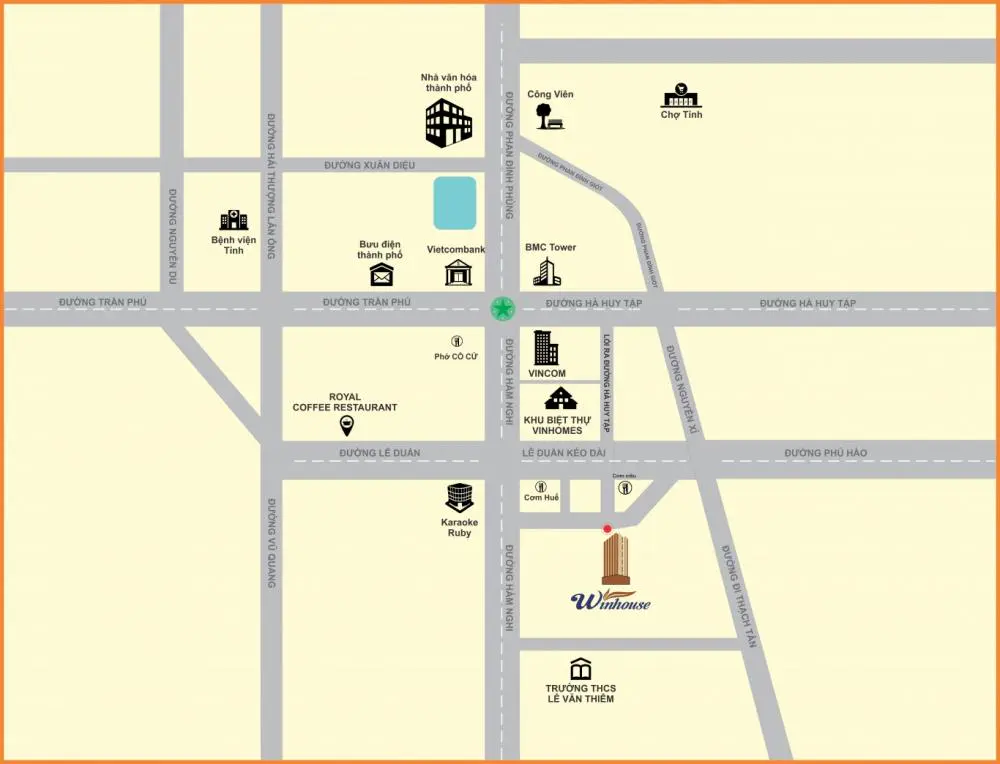 Tọa lạc ngay vị trí trung tâm TP. Hà Tĩnh, Winhouse Hàm Nghi sở hữu lợi thế về kết nối giao thông, xung quanh còn là khu vực sầm uất nhất nhì đô thị với nhiều vụ tiện ích hiện hữu như siêu thị, bệnh viện, trường học, bến xe, trung tâm thương mại Vincom, chợ...