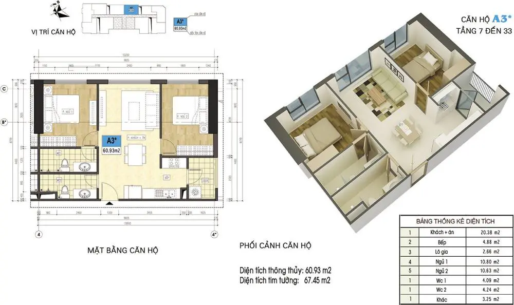 Sơ đồ thiết kế chi tiết căn hộ A3* Xuân Mai Riverside