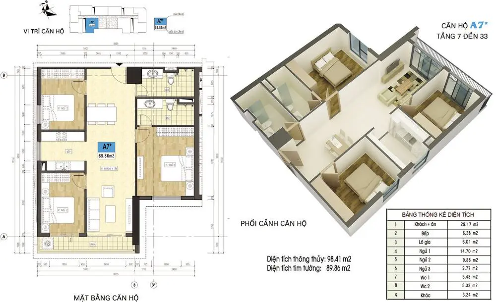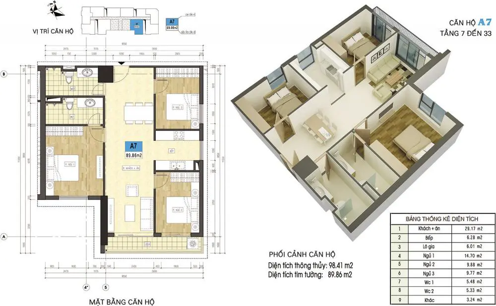 Sơ đồ thiết kế chi tiết căn hộ A7* Xuân Mai Riverside