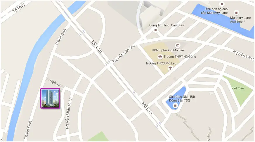 Dự án Xuân Mai Riverside tọa lạc tại số 150 đường Thanh Bình, quận Hà Đông, TP. Hà Nội. Đặc biệt, dự án nằm trên trục giao thông với lợi thế thuận tiện xen giữa đường Lê Văn lương kéo dài và trục Nguyễn Trãi - Trần Phú (cách 1km), dễ dàng kết nối được với mọi khu vực xung quanh và di chuyển đến khu vực trung tâm thành phố.