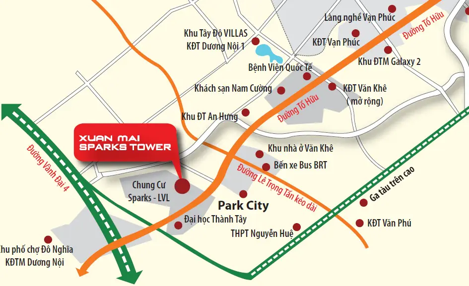 Ví trí chung cư Xuân Mai Sparks Tower trên bản đồ