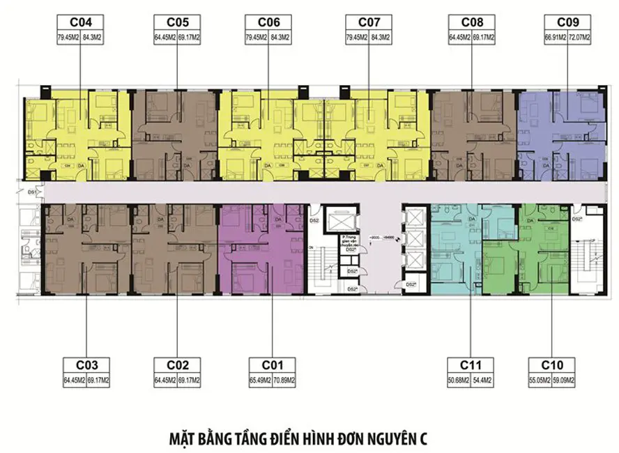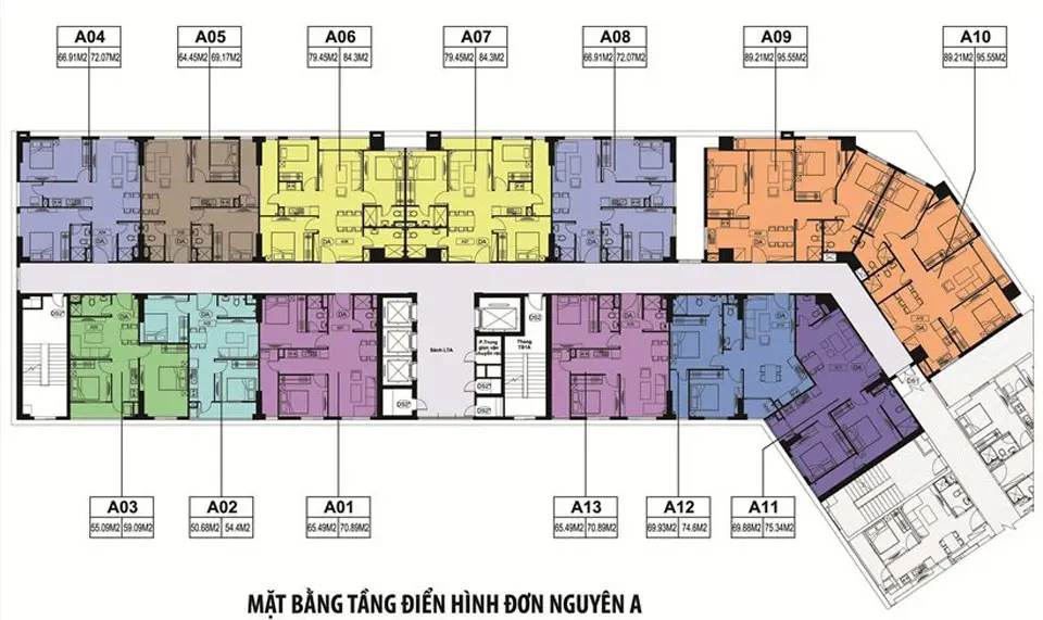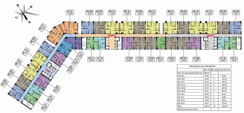 - Bao gồm 3 tòa A, B, C cao 25 tầng, trong đó:
