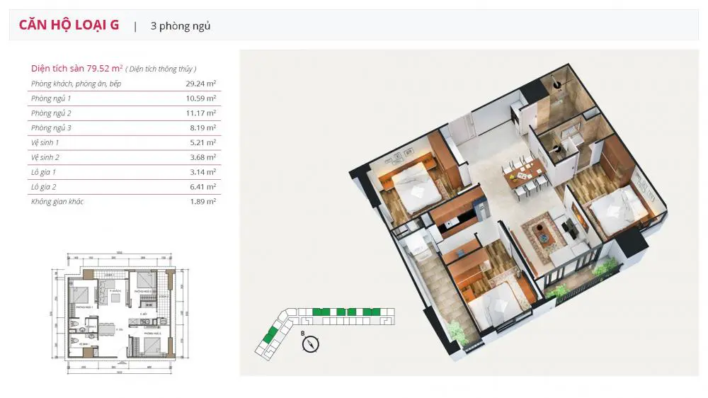 Mặt bằng thiết kế căn hộ 03 phòng ngủ: