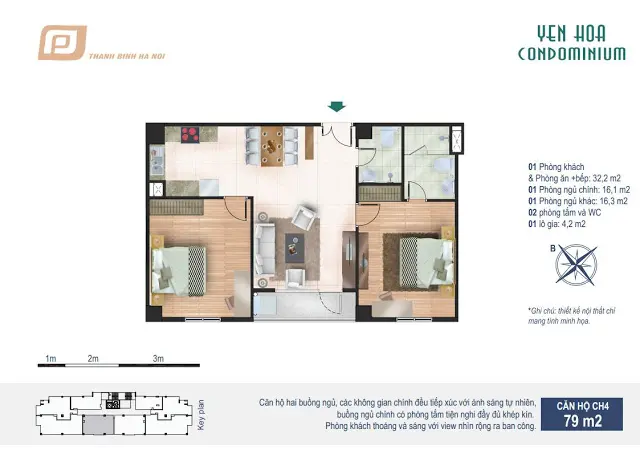 - Căn hộ CH5 rộng 79m2 gồm 2 phòng ngủ, 2 WC